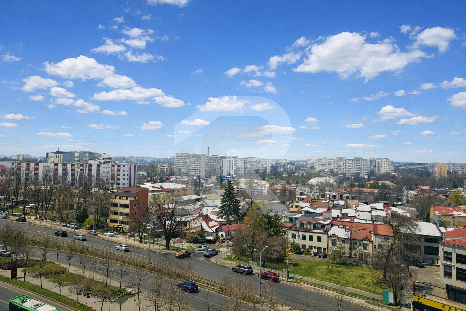 Apartament situat la etajul 8 din 10, cu vedere liberă spre zona de case și bulevard.