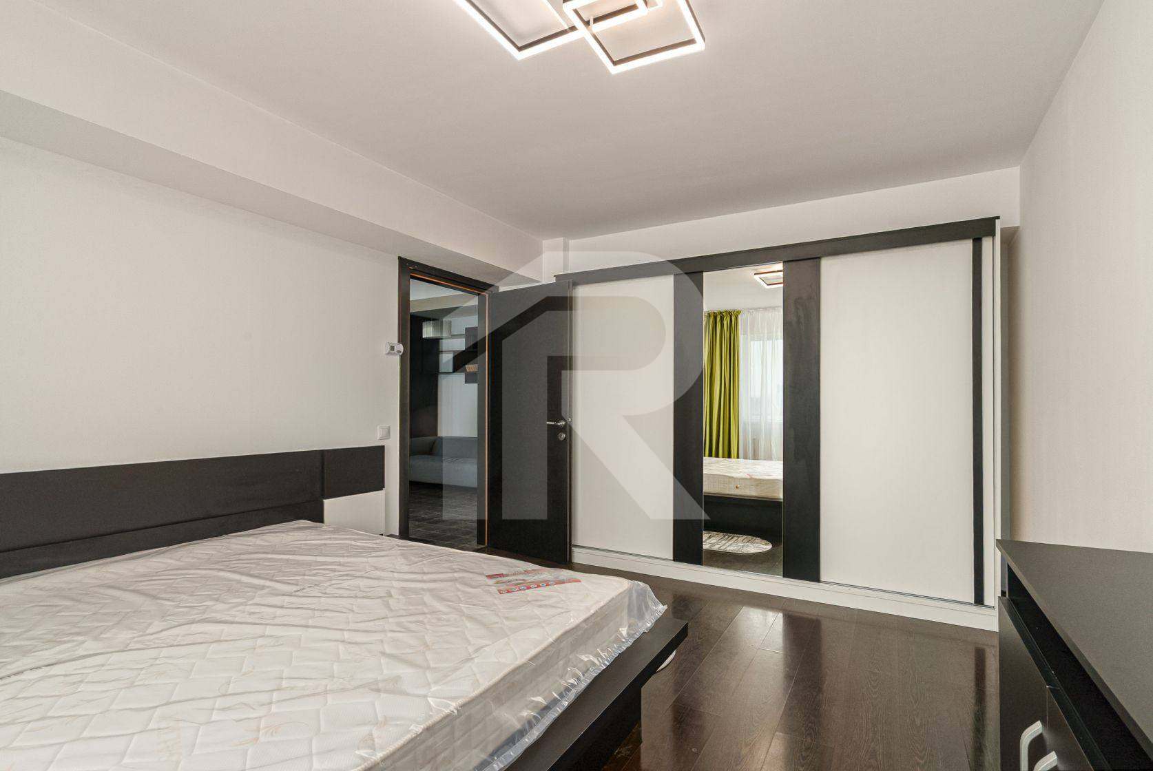 🛋️ Dormitor spațios, mobilier modern și ferestre mari cu lumină naturală.