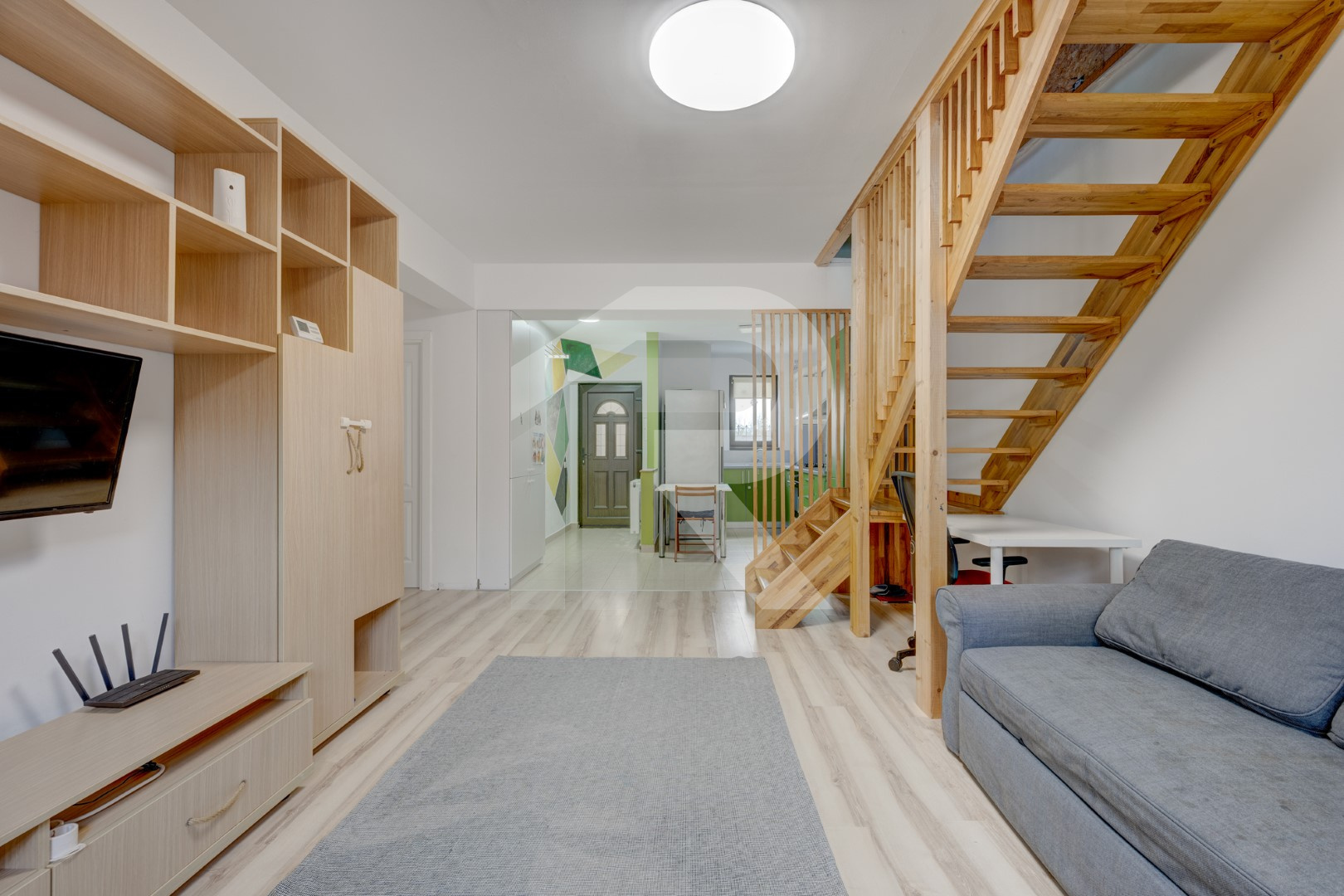 Casă tip duplex cu 2 dormitoare si mansarda spatioasa, perfecta pentru o familie ce isi doreste liniste, intimitate și spațiu pentru recreere.