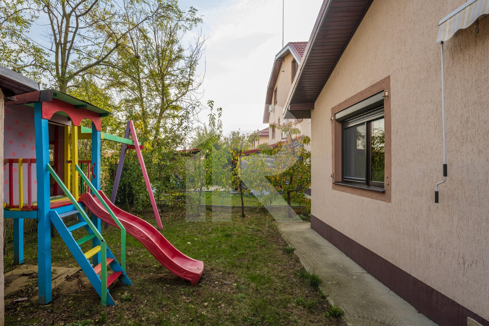 Lot perfect dimensionat, curte amenajata cu casuta de gradina si loc joaca.
