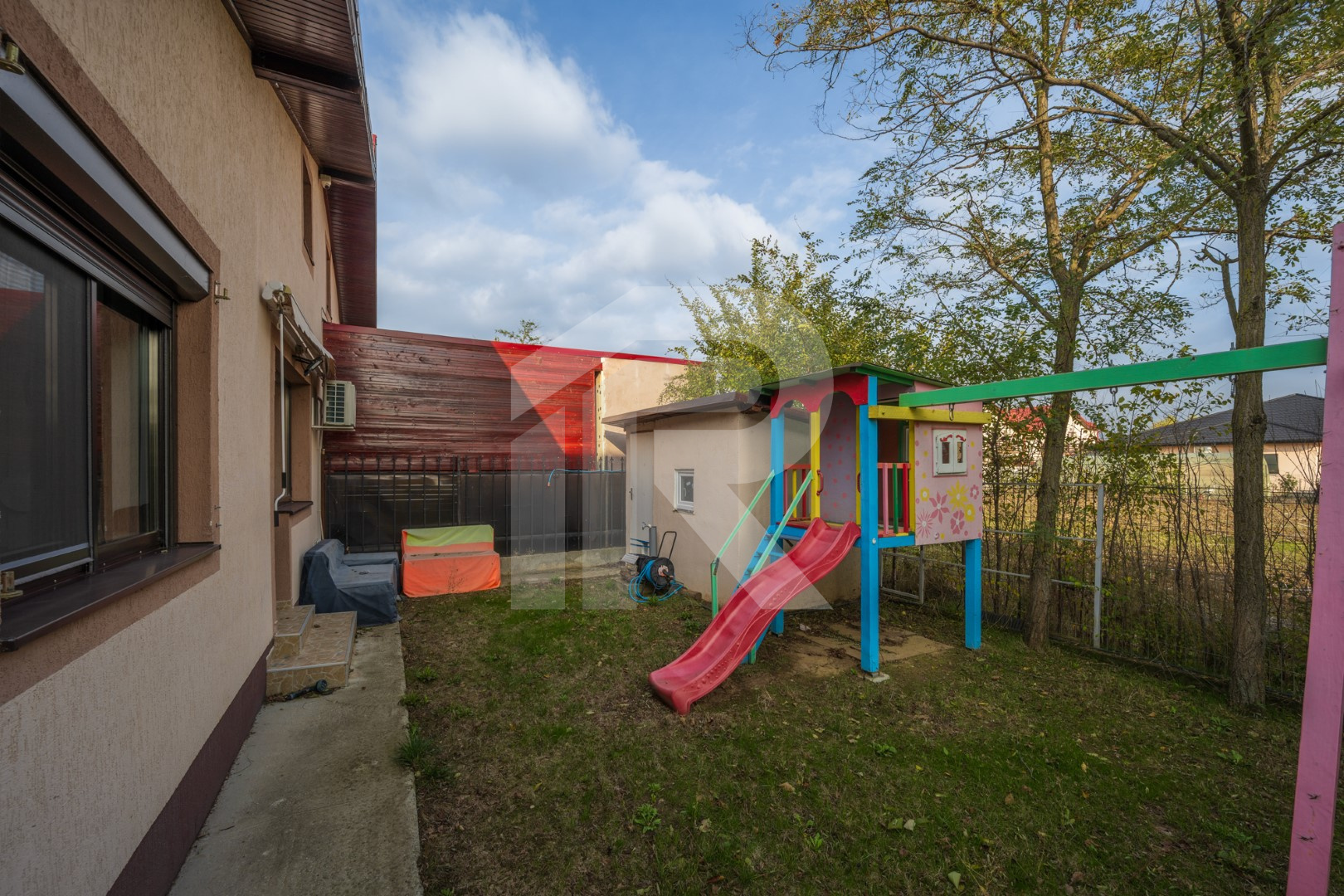 Lot perfect dimensionat, curte amenajata cu casuta de gradina si loc joaca.