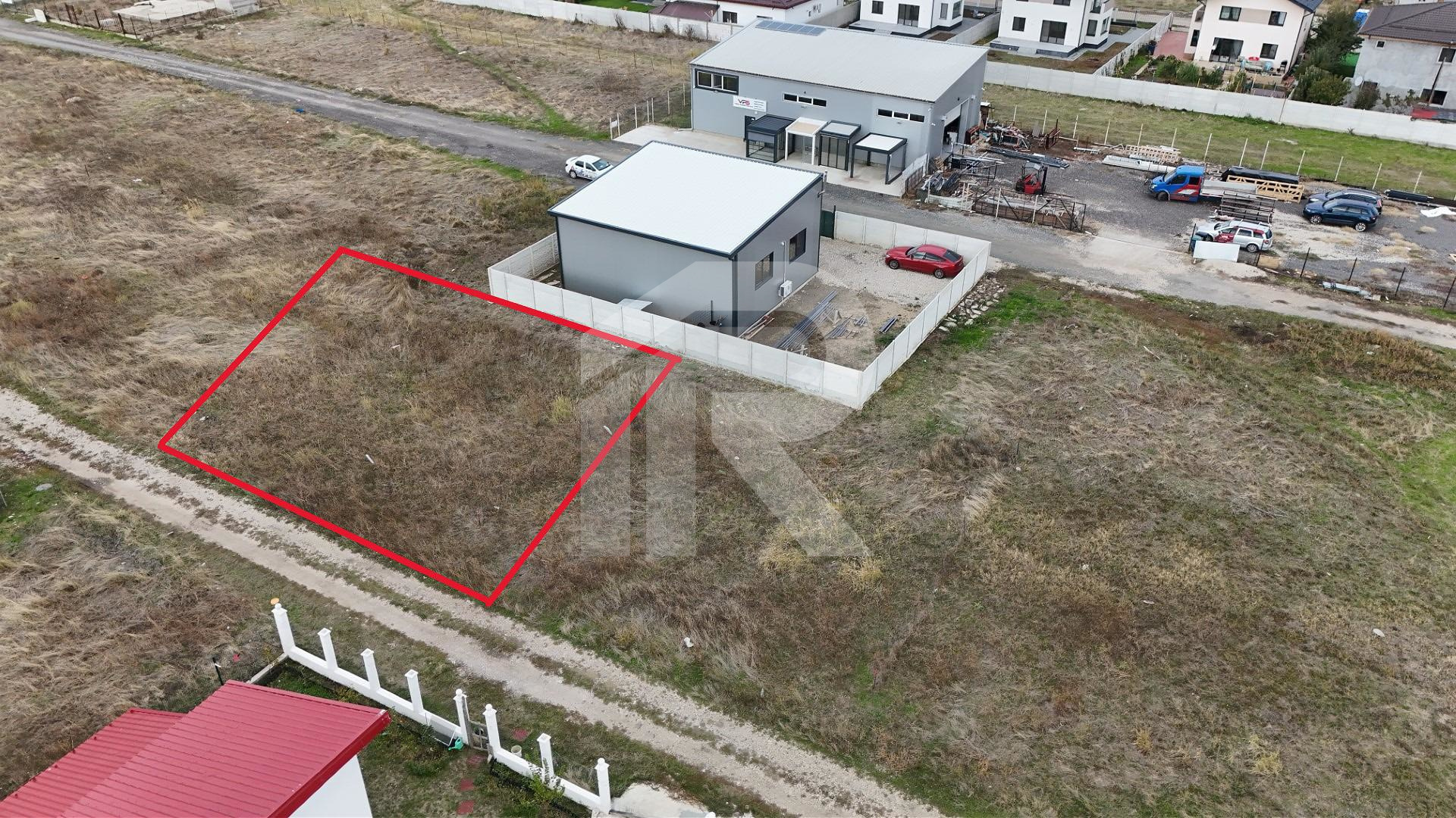 Teren drept, cu deschidere generoasă, ideal pentru casă individuală sau mică hală/depozit.Acces facil la șoseaua principală, drum pietruit compact, utilități la stradă (curent, gaze în apropiere).